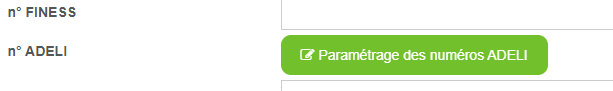 - A la rubrique N° Adeli, cliquez sur le bouton vert Paramétrage des numéros ADELI