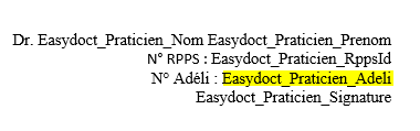 Si vous avez paramétré le champ automatique "Easydoct_Praticien_Adeli" dans un document d'examen :