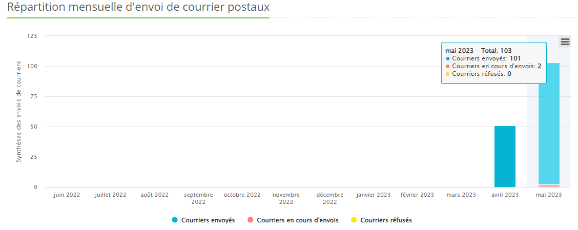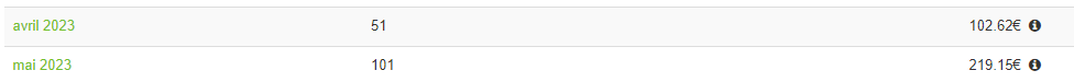 - Pour obtenir le détail des envois, cliquez sur le mois dans ce tableau d'agrégation