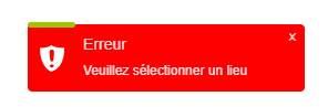 Lorsqu'il cliquera sur le bouton Rechercher un rendez-vous, un message lui indiquera qu'il est obligatoire de sélectionner un lieu.