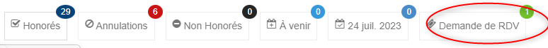 Si le centre a l'option de demande de rendez-vous, il sera désormais possible de visualiser sur le rendez-vous si une demande a été enregistrée pour le patient