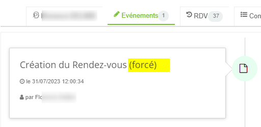 Lorsqu'un utilisateur a utilisé le bouton "forcer l'examen" (selon ses droits) lors d'une prise de rendez-vous, ceci est désormais visible dans les évènements du rendez-vous